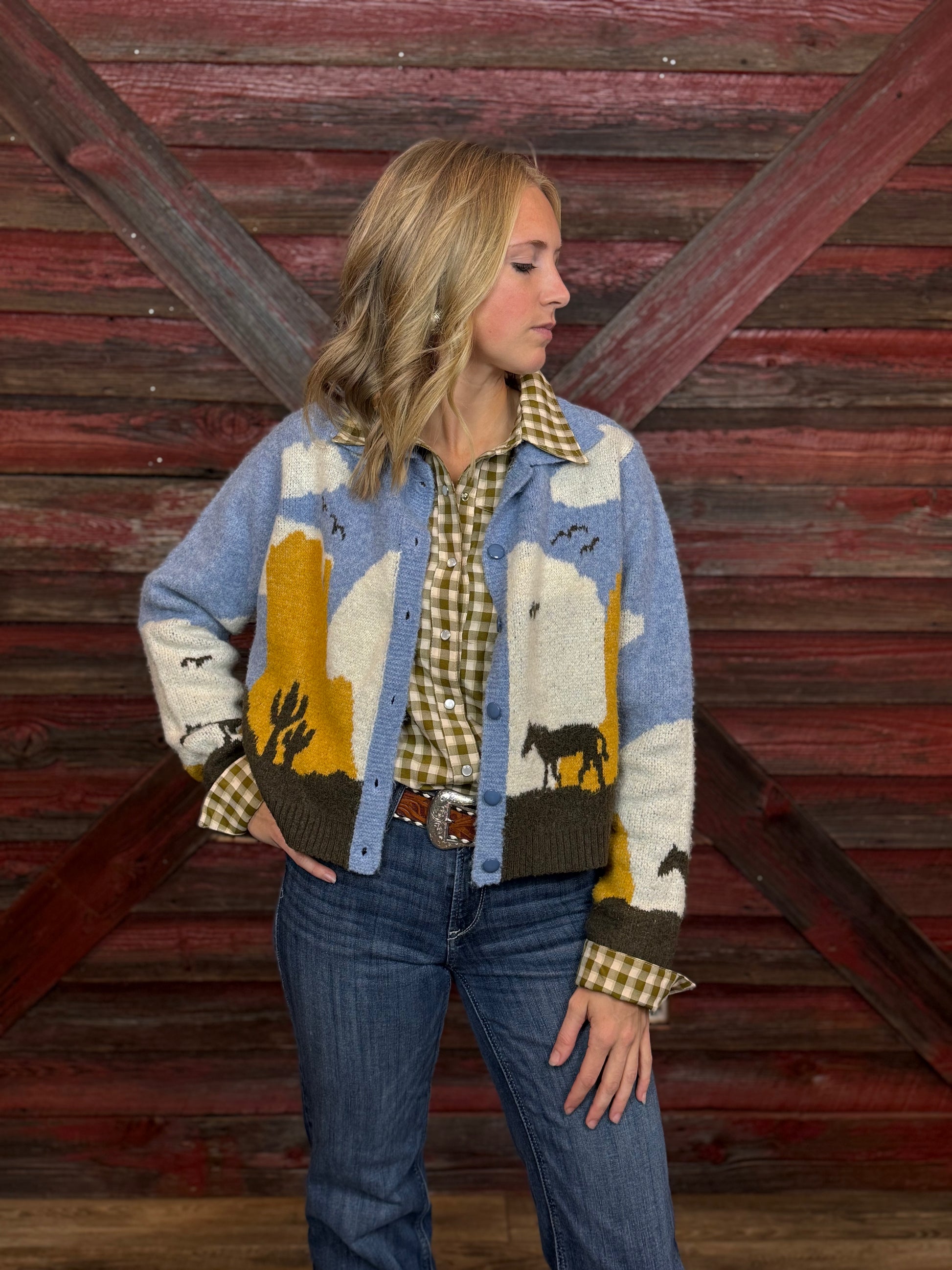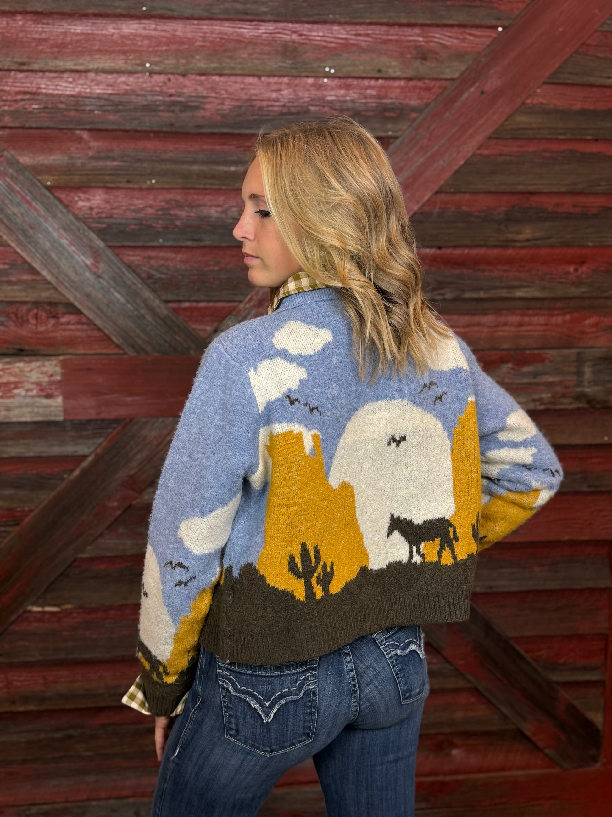 Cropped Knit Sweater featuring a Desert Scene