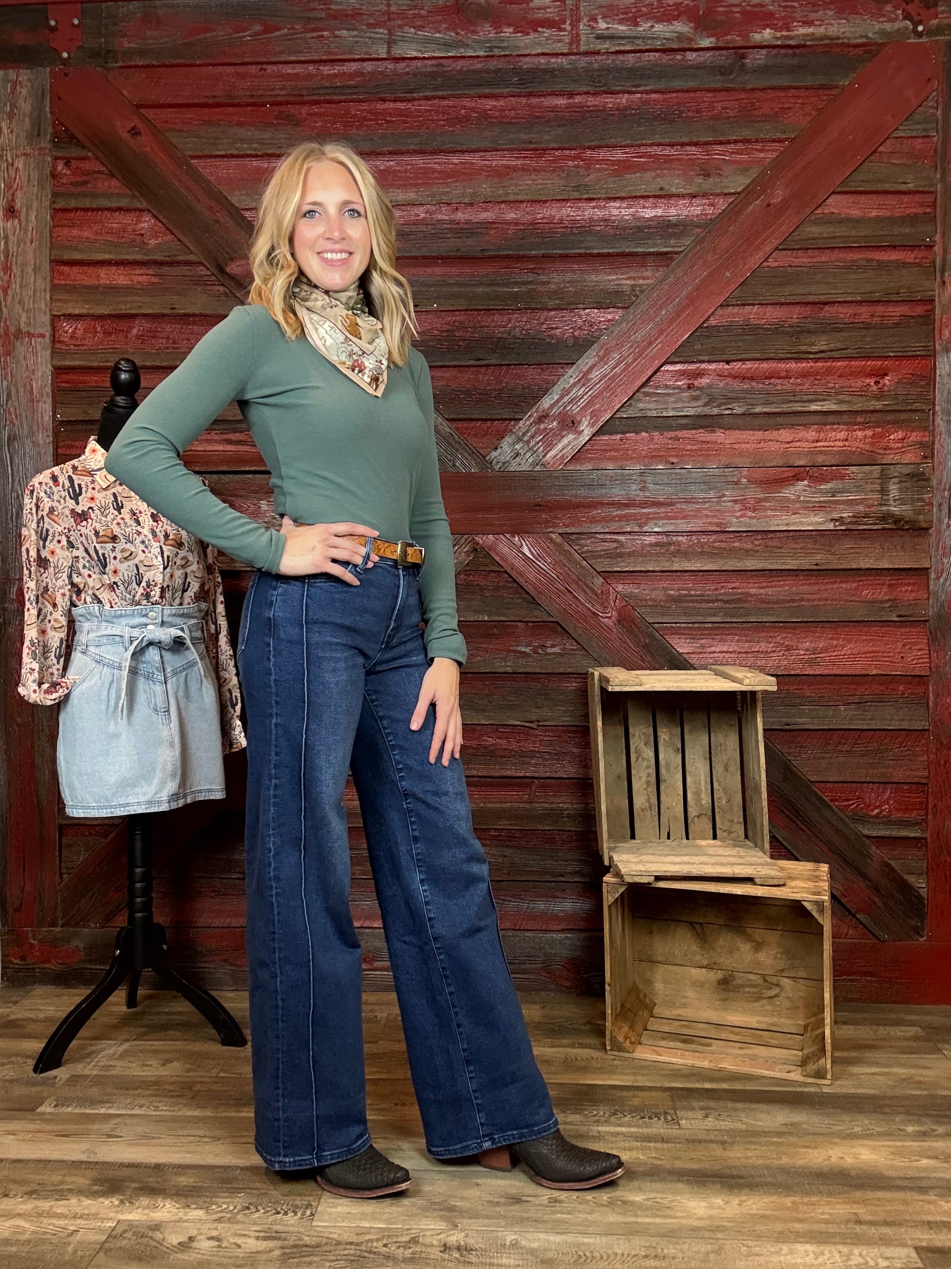 Olive Round Neck, Fitted, Ribbed, Knit Top