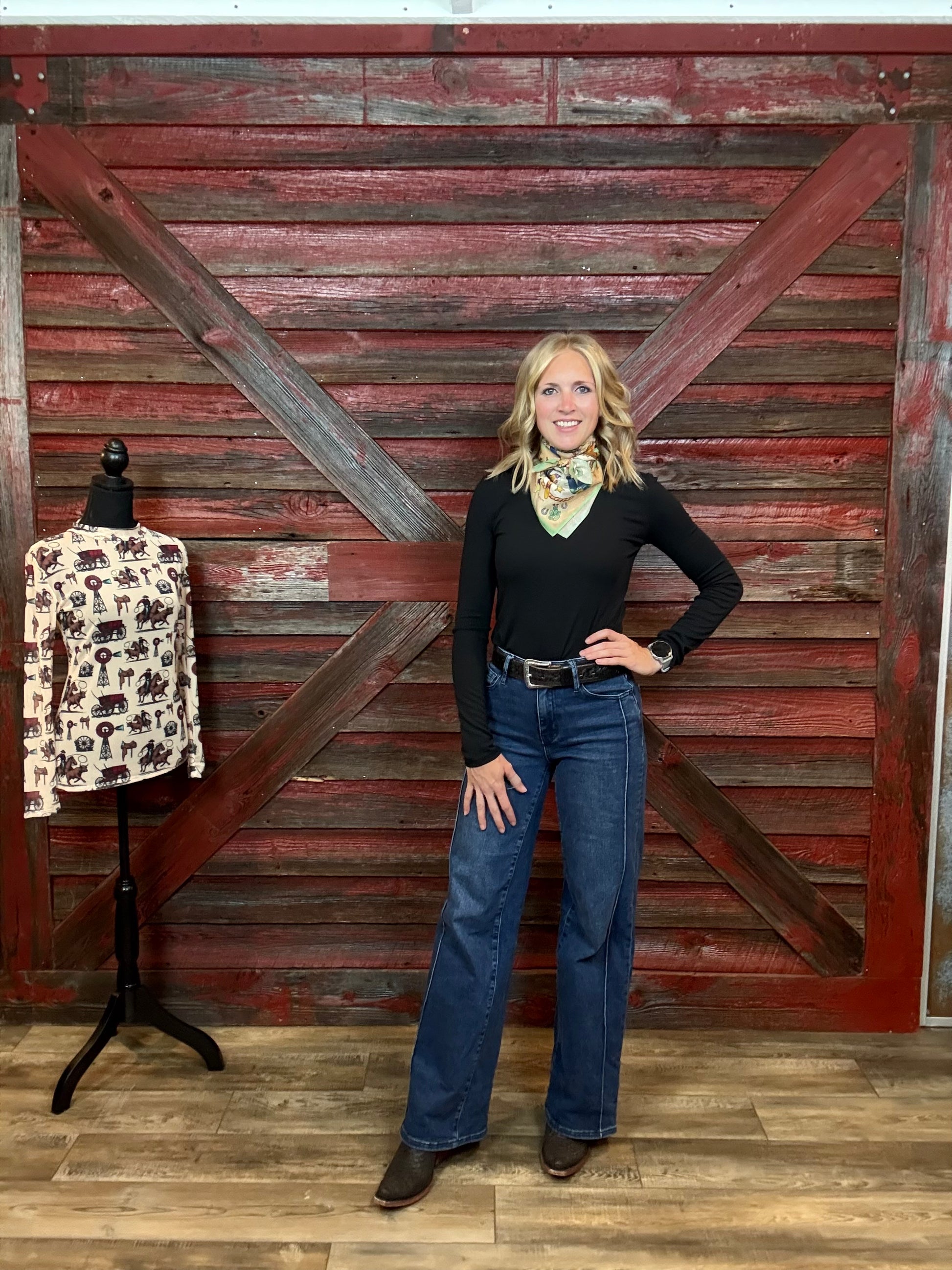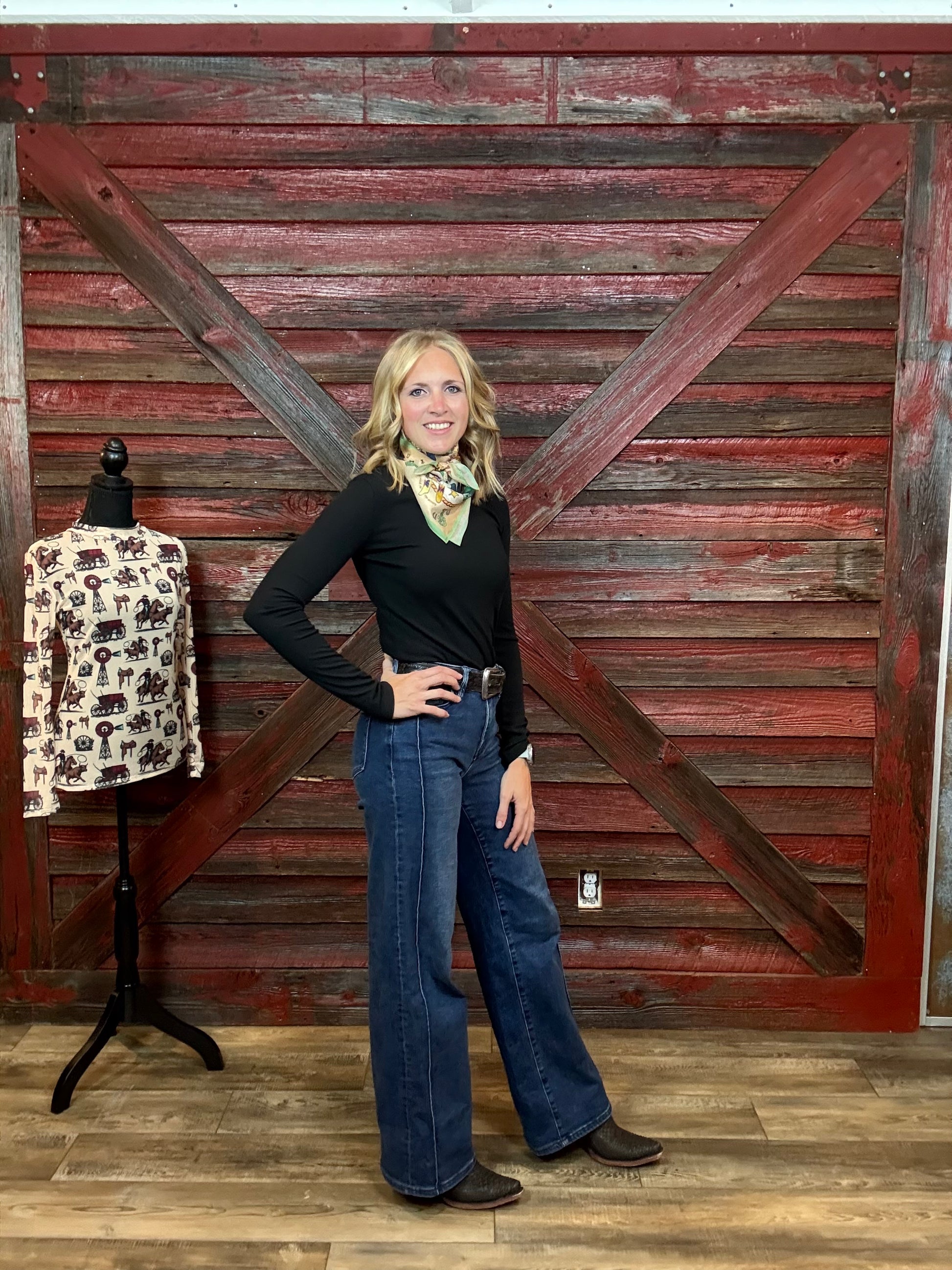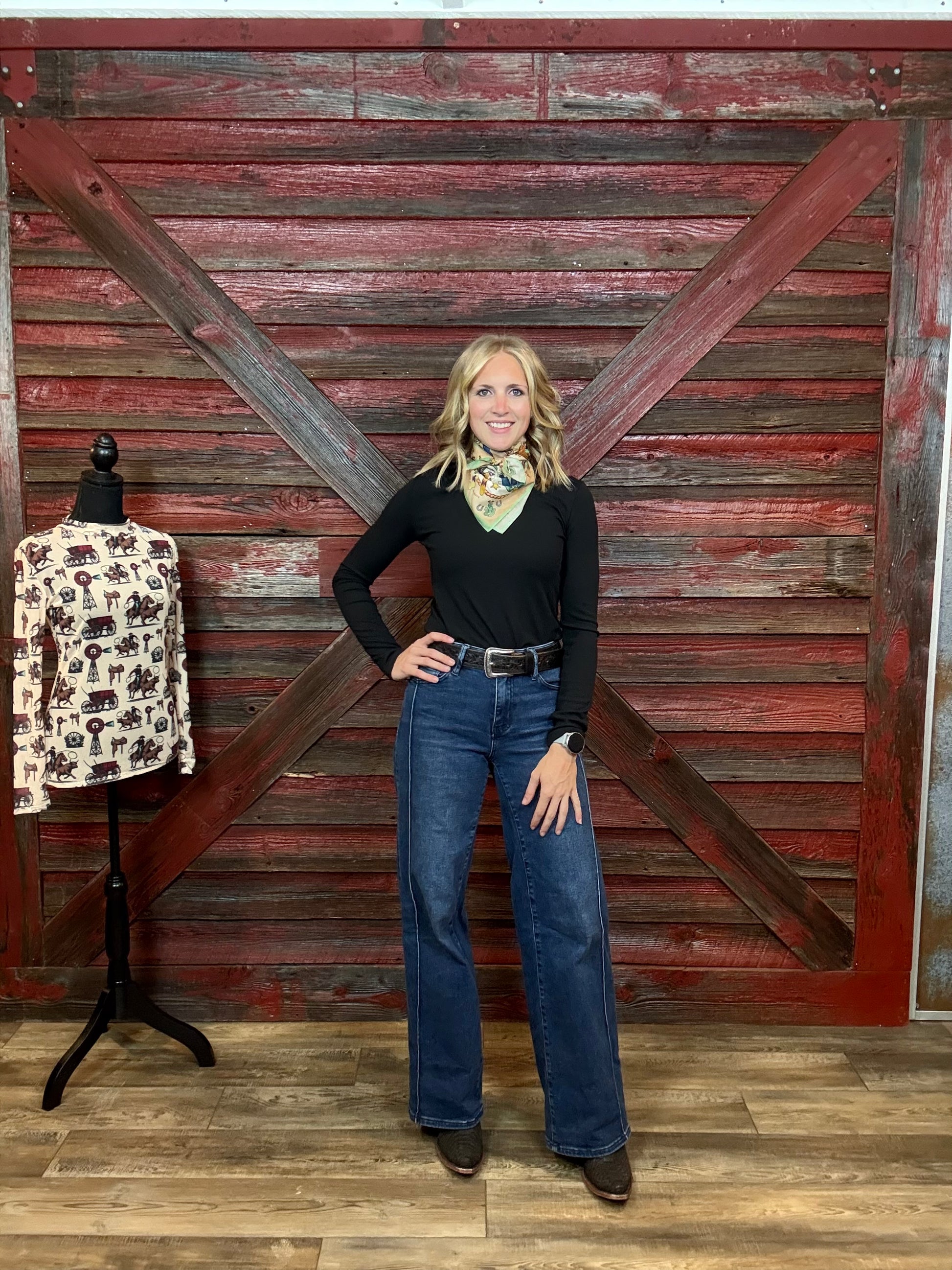 Black Round Neck, Fitted, Ribbed, Knit Top