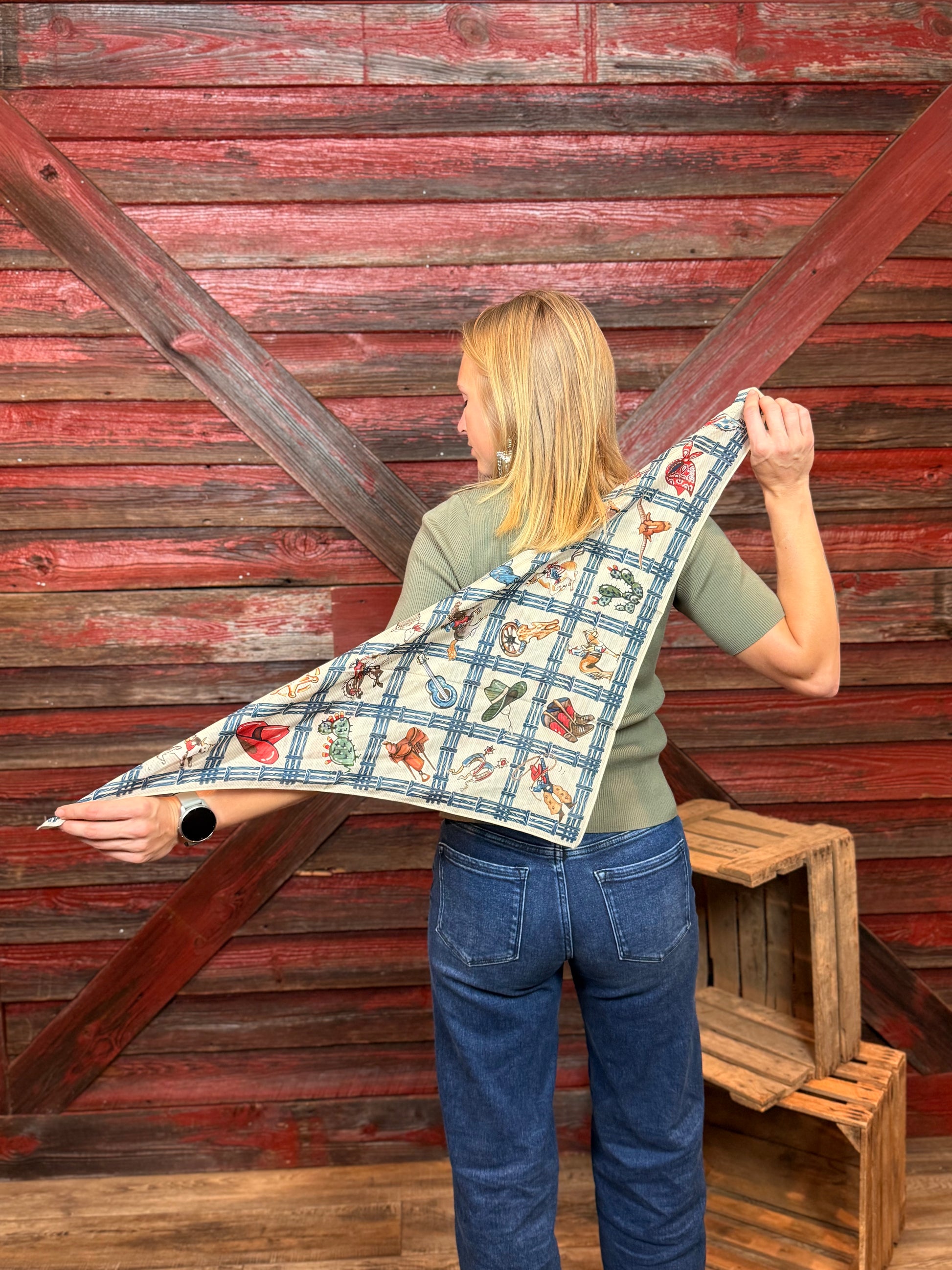 A beautiful display of vibrant colors and the western way of life, making it easy to pair with nearly any outfit for a pop of color or print!