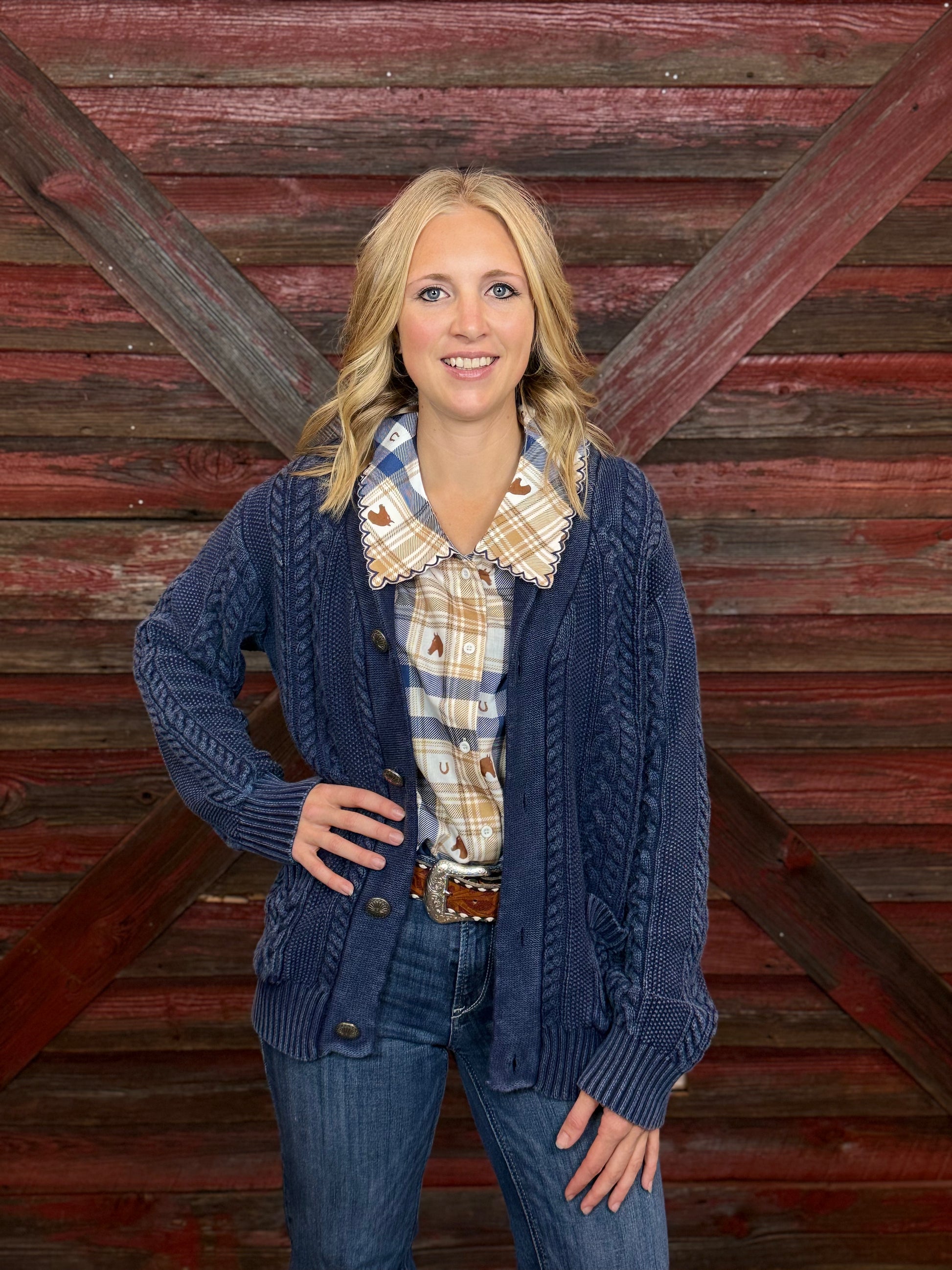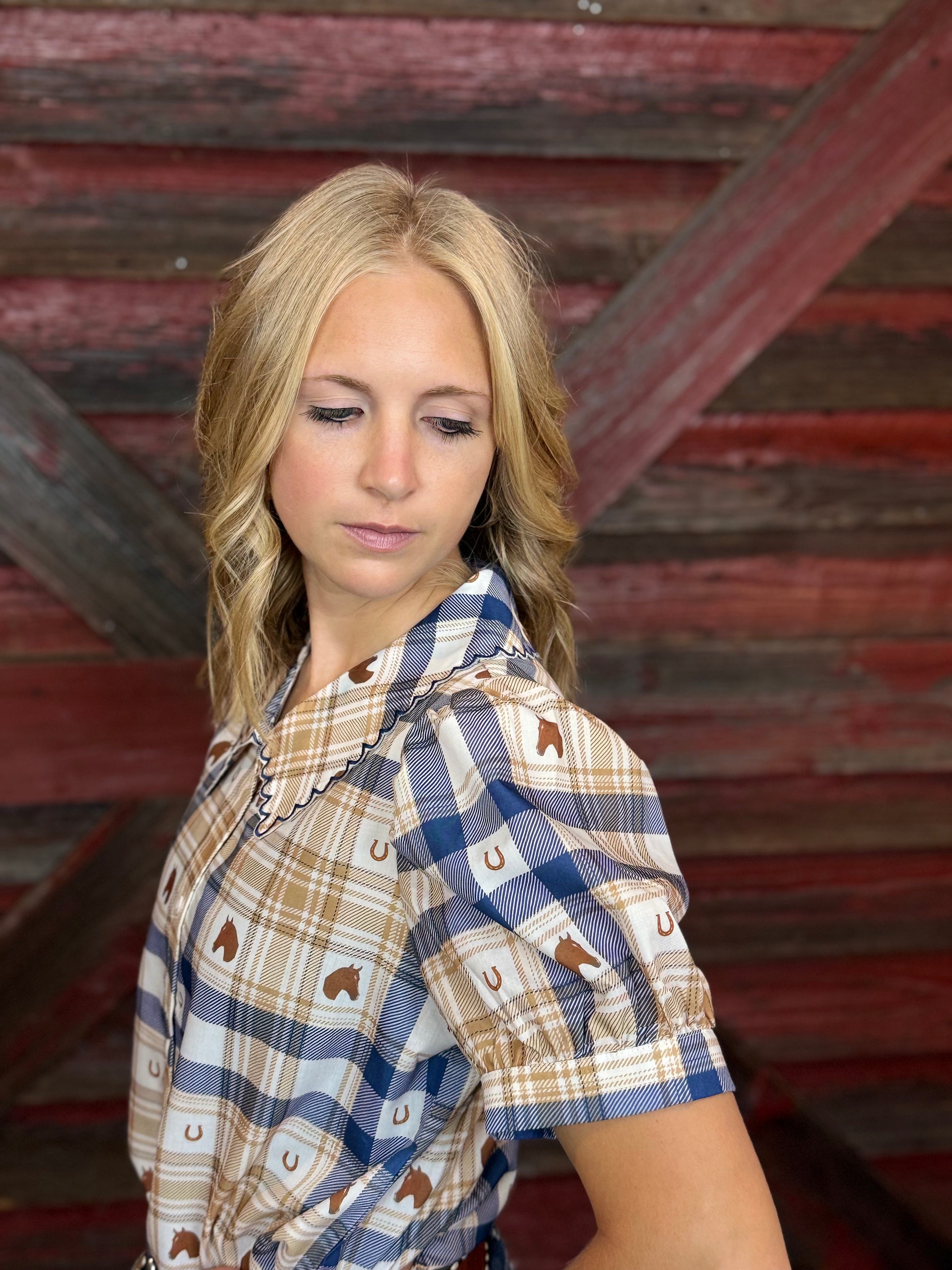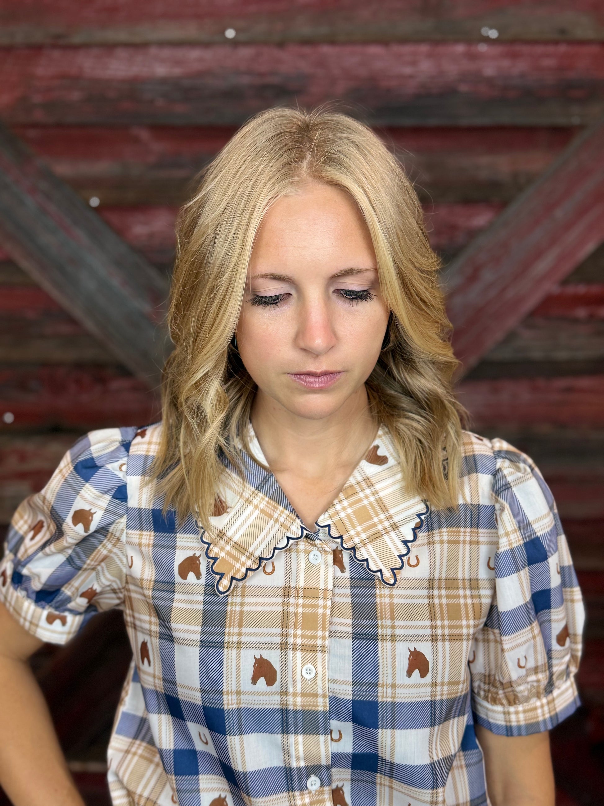 The Horse Print, Puff Sleeves, and Peter Pan Collar give this blouse an incredible amount of charm.