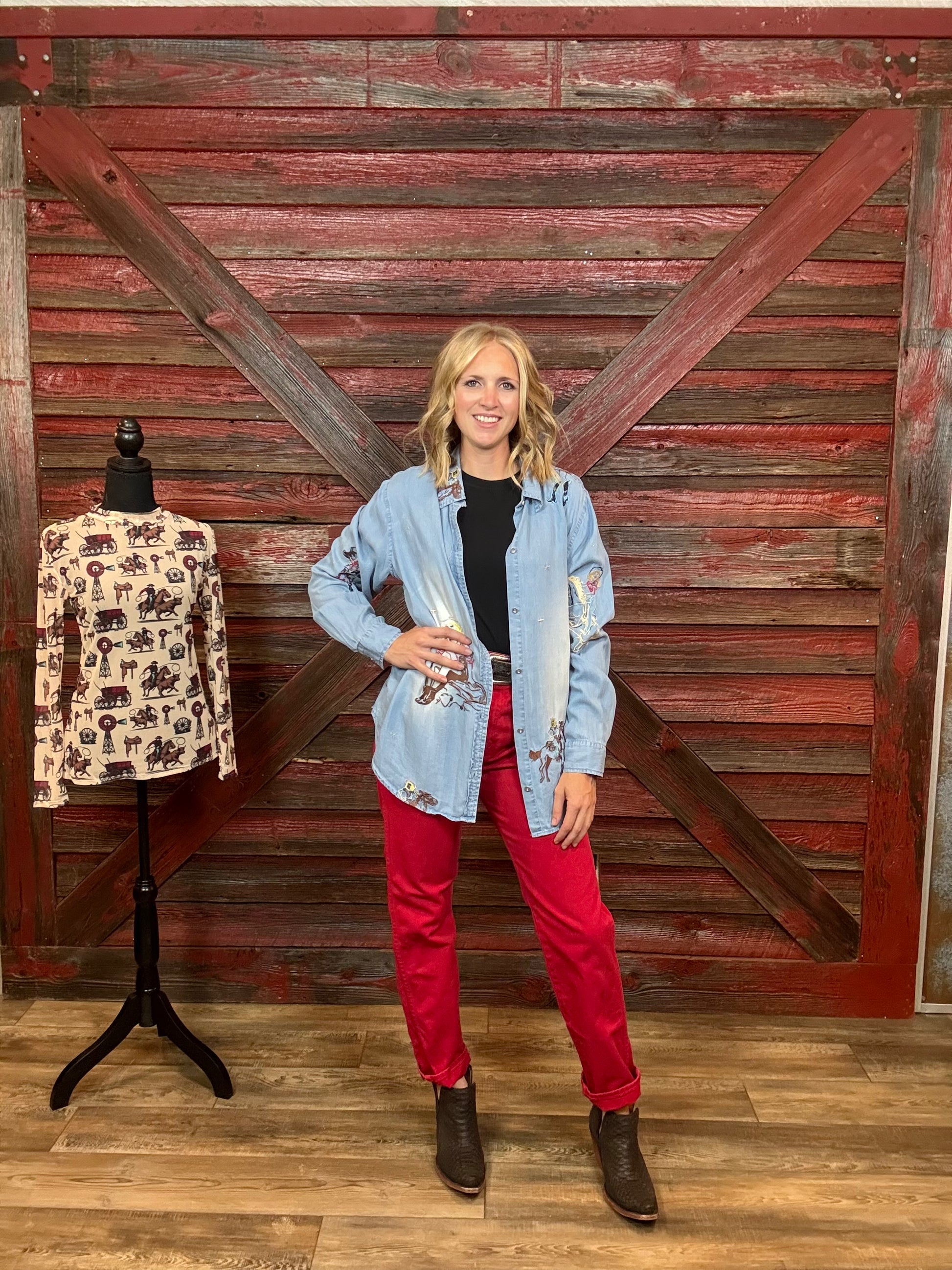 Medium wash, Lightweight button down with so much character.