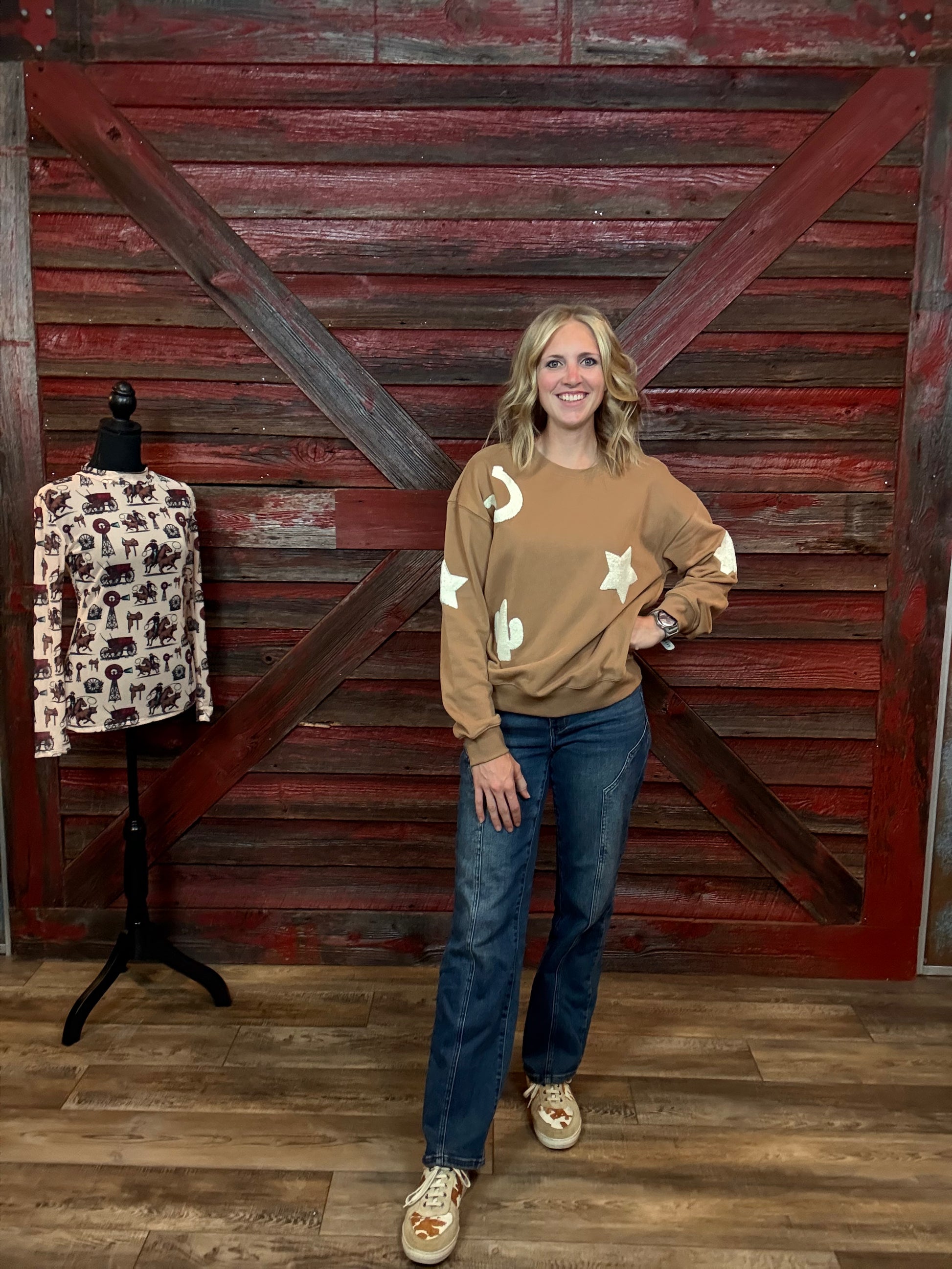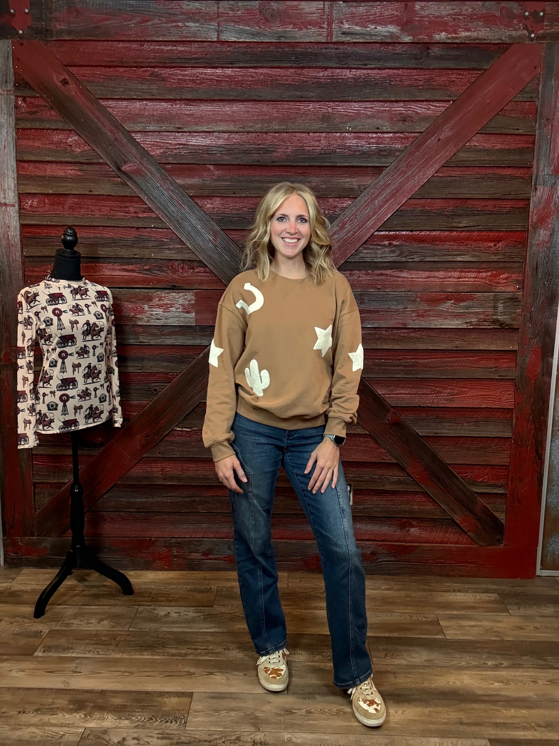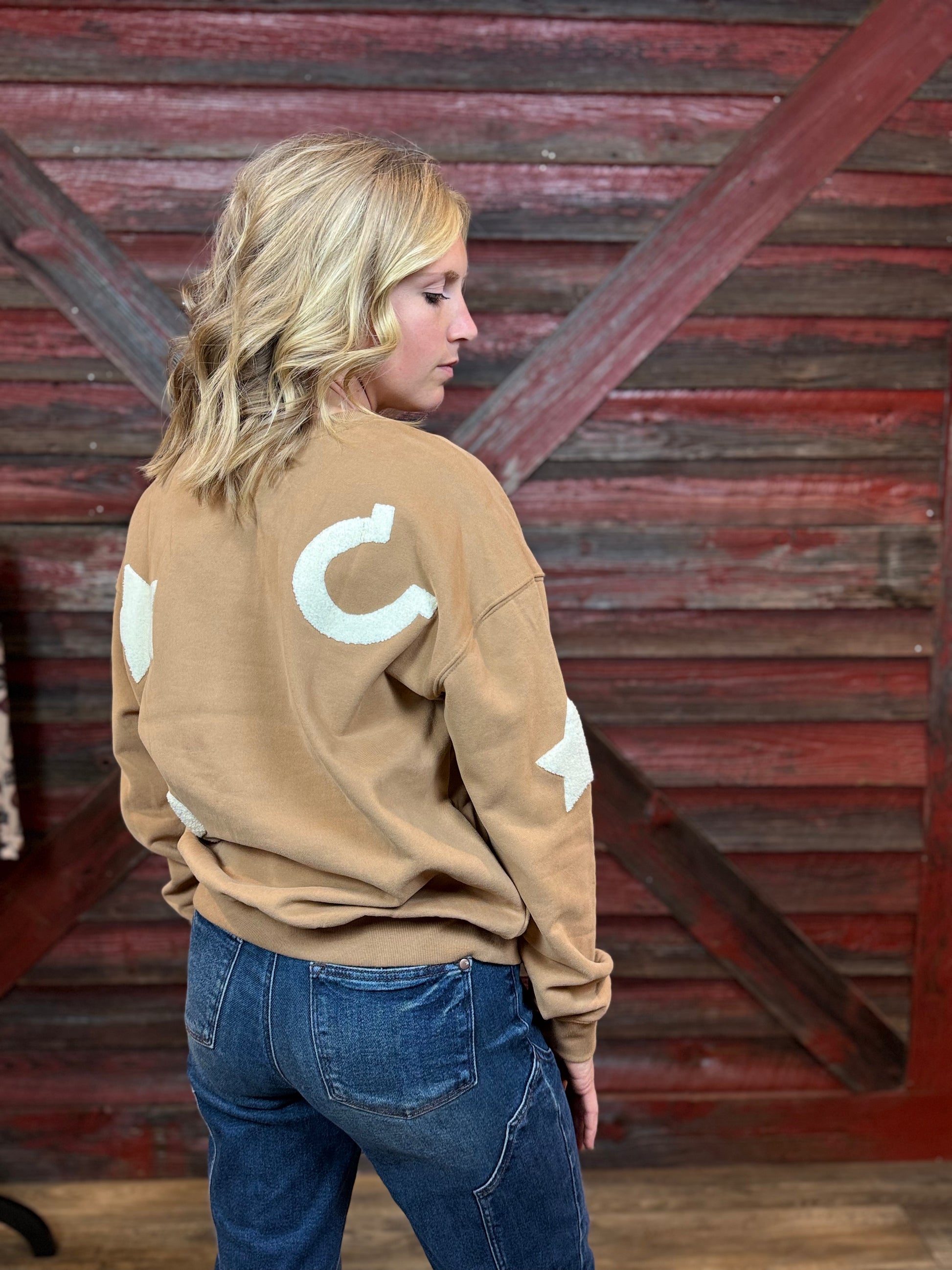 Mocha Crewneck with Textured Patchwork
