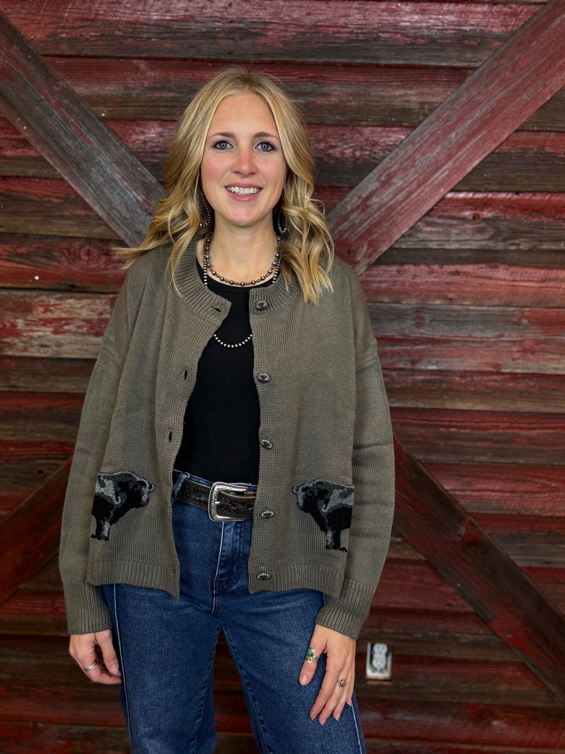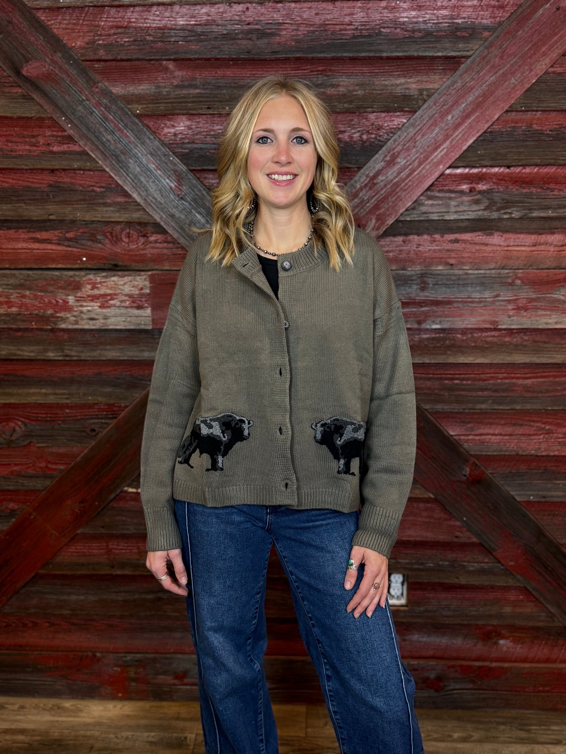 Sage Green Cardigan with Angus Detailing