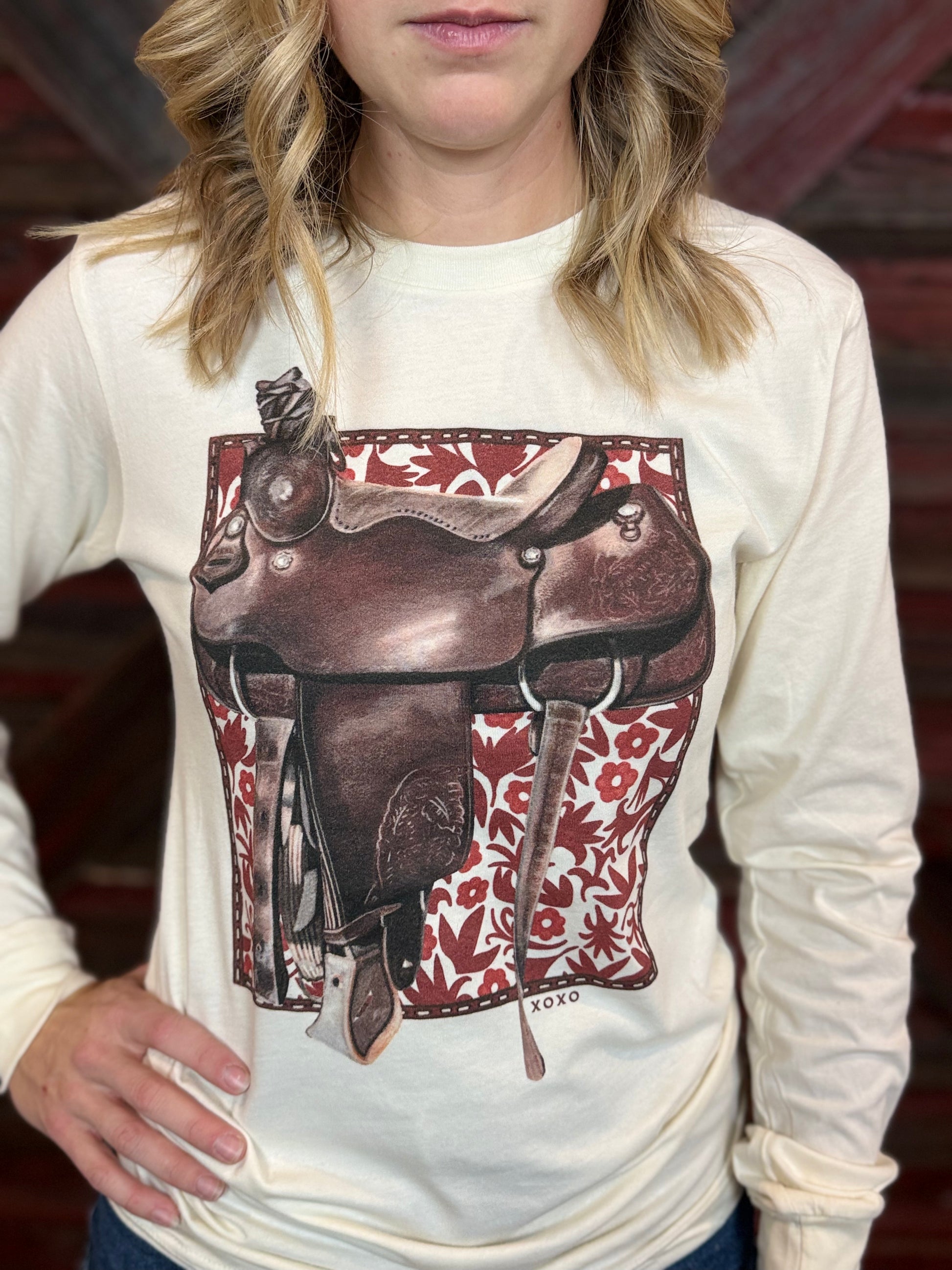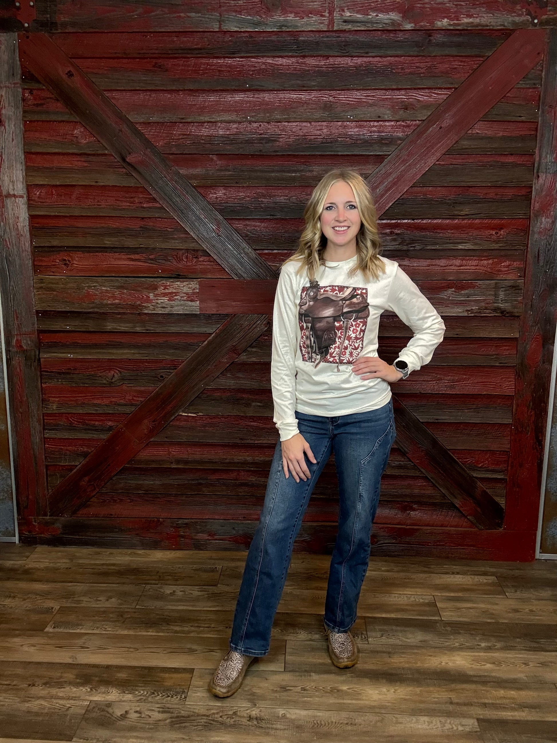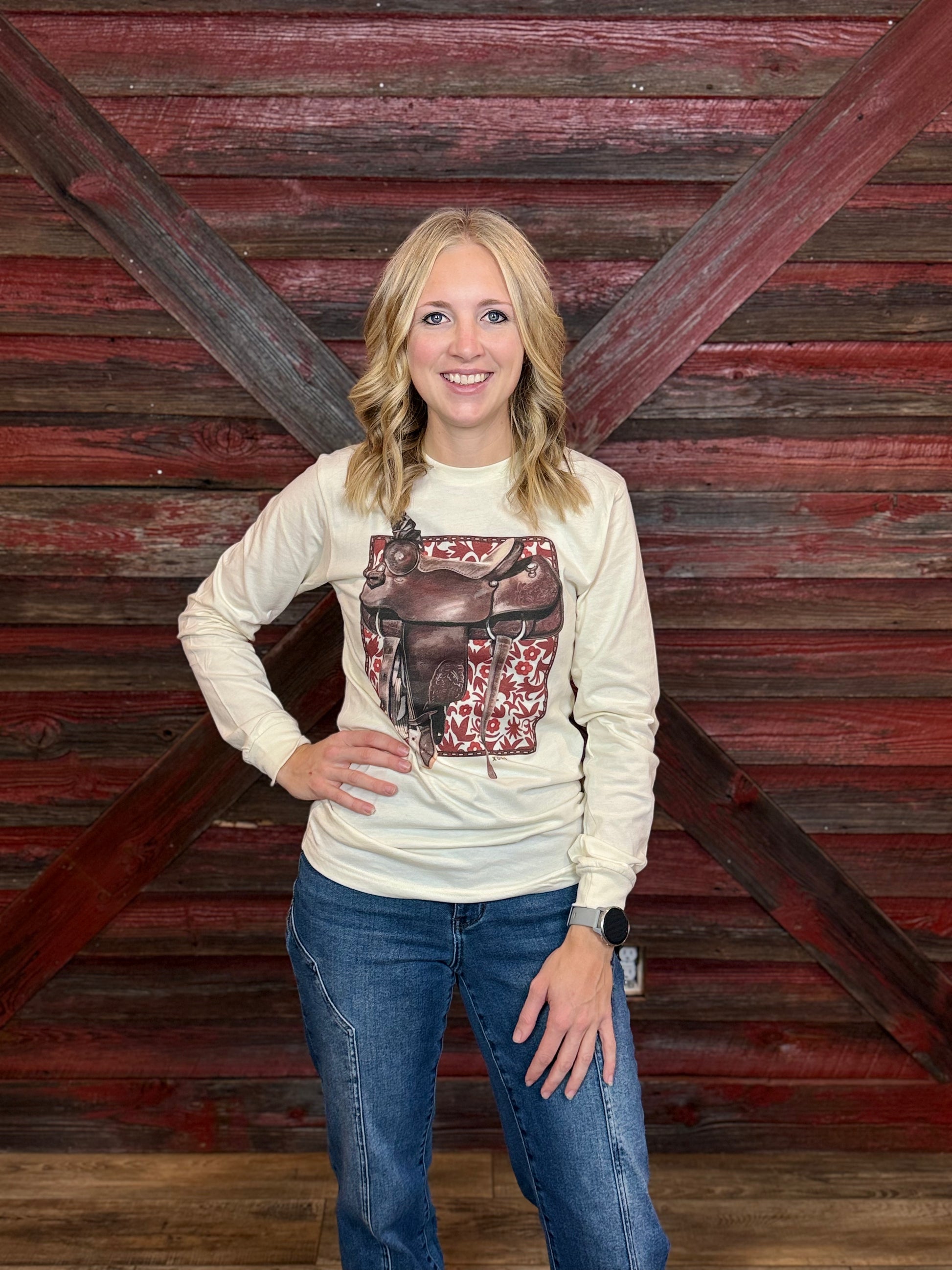 Long Sleeve Bella Canvas Tee with Roper Saddle