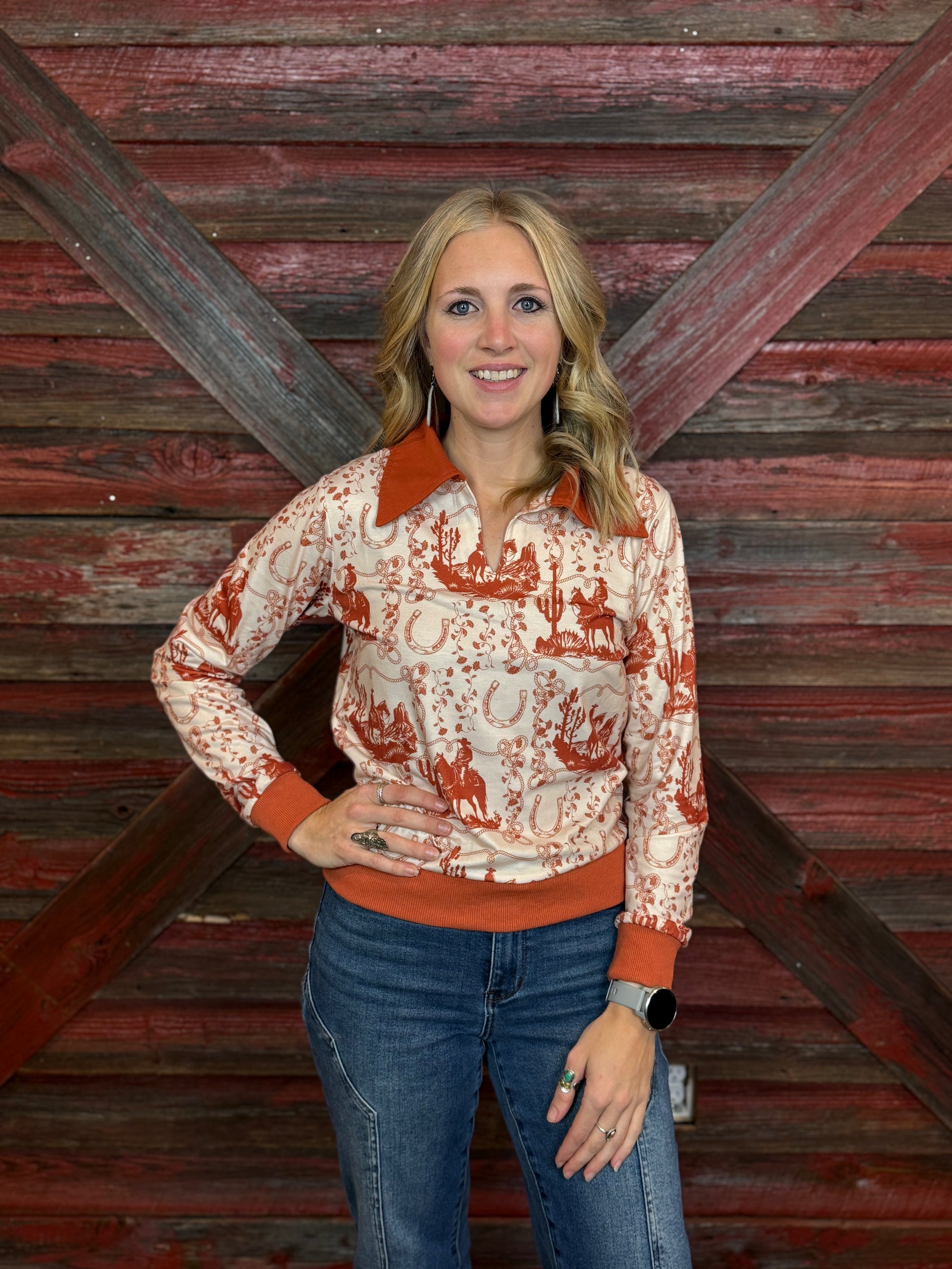Bringing a western twist to your errand outfit. This top is great for everyday wear.