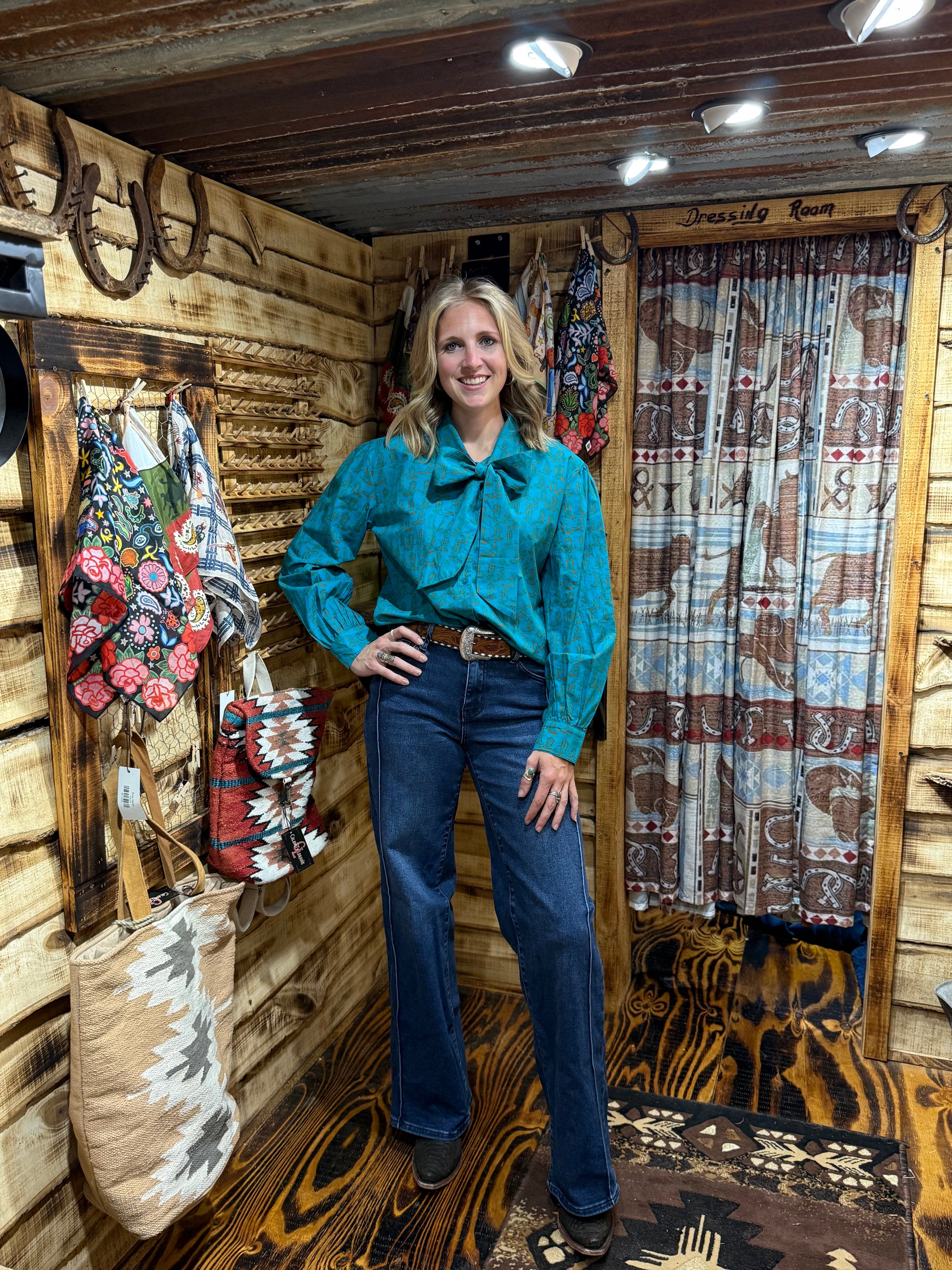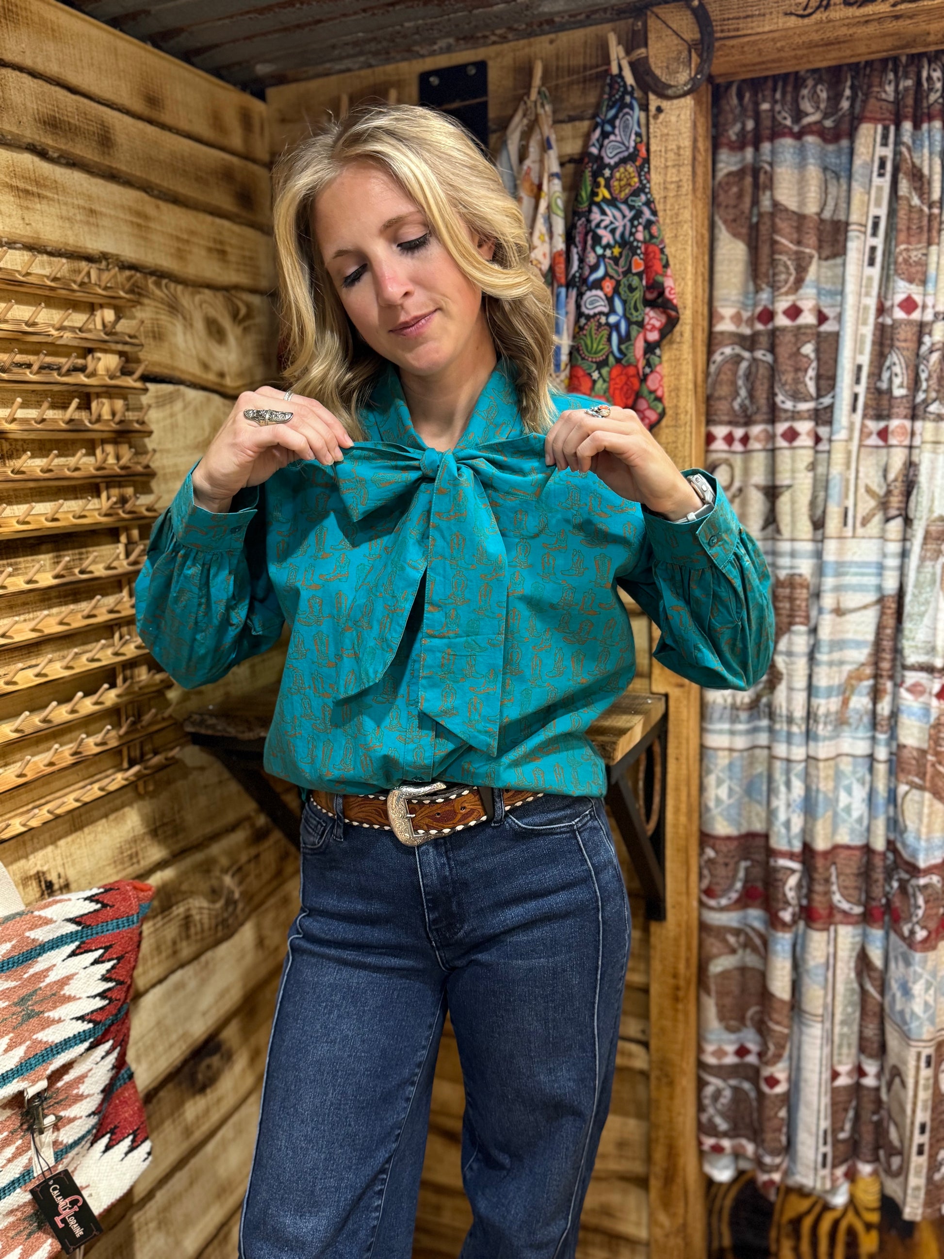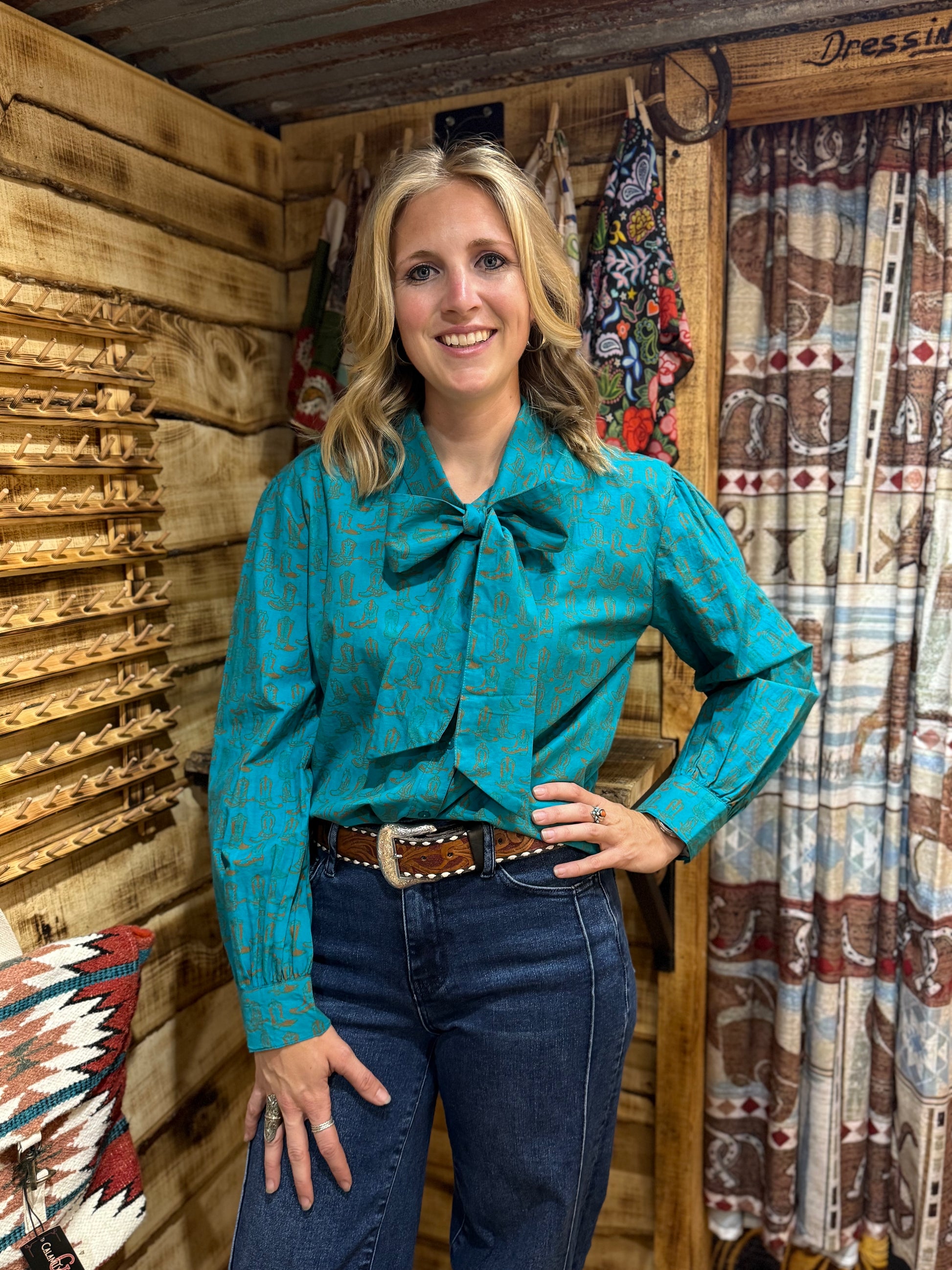 This blouse gives you an elevated appearance, with a subtle western pattern.